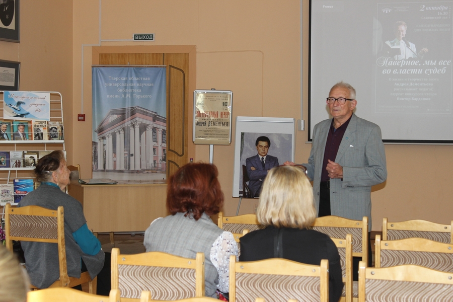 2 октября состоялся вечер, посвящённый любимому поэту старшего поколения, нашему земляку Андрею Дементьеву. О жизни и творчестве поэта рассказал педагог, Почётный гражданин Кашинского городского округа, человек активной жизненной позиции Виктор Хрисанфович Бардашов.