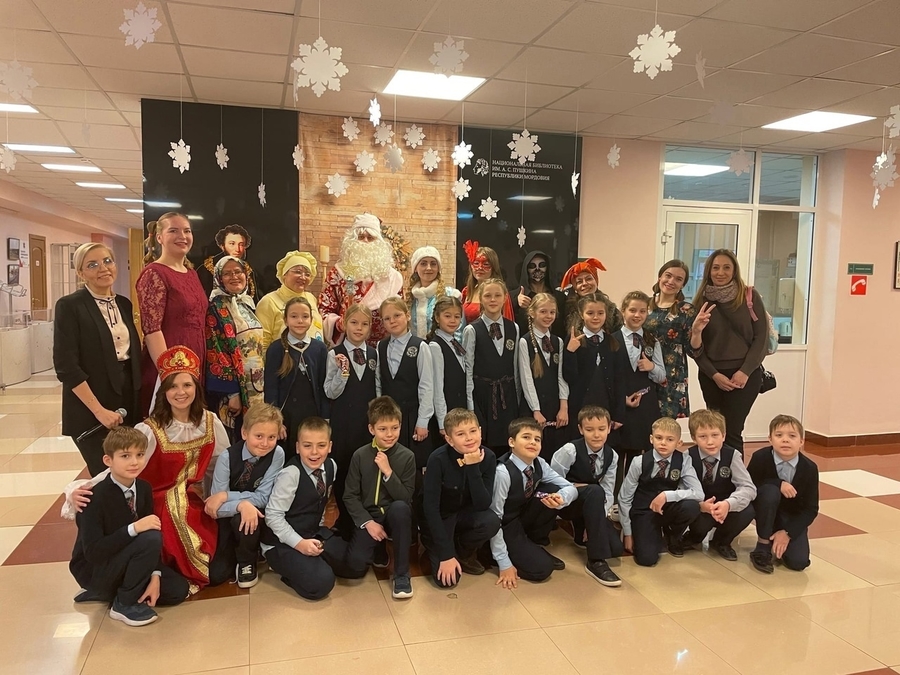 С 19 по 30 декабря в Национальной библиотеке проходит новогодняя елка-квест «Сказочный переполох в Пушкинке» для учащихся начальных классов. Ребята познакомились с двумя озорными, но добрыми сестрами Машей и Дашей, по вине которых была порвана книга с волшебными сказками, и все персонажи сказочной страны потеряли свой привычный облик.