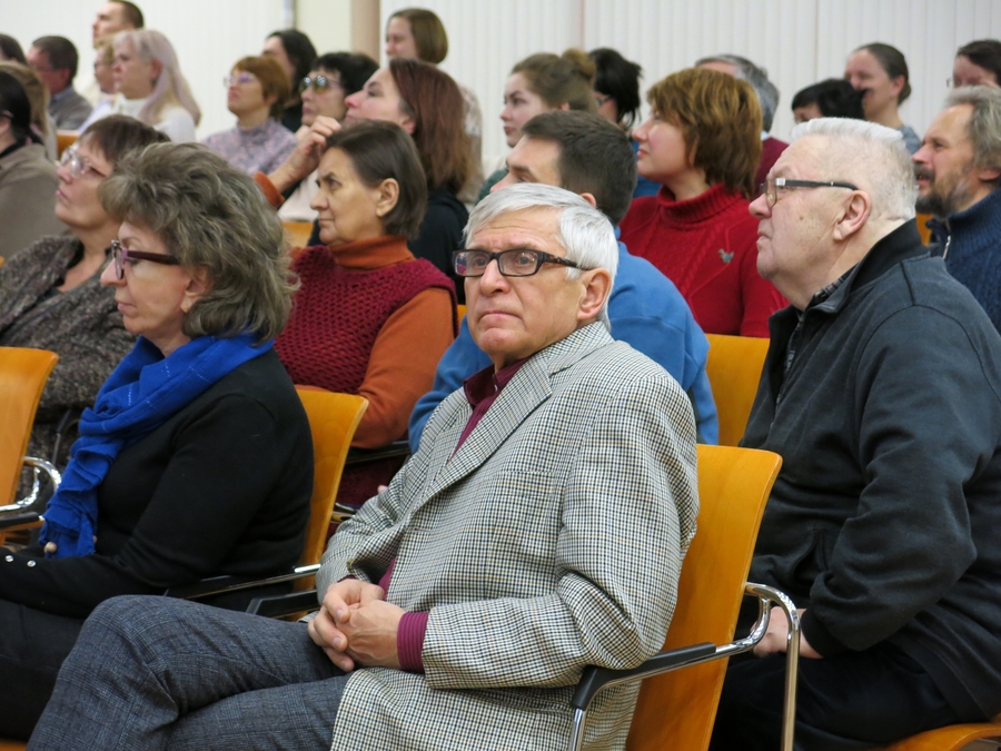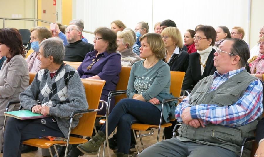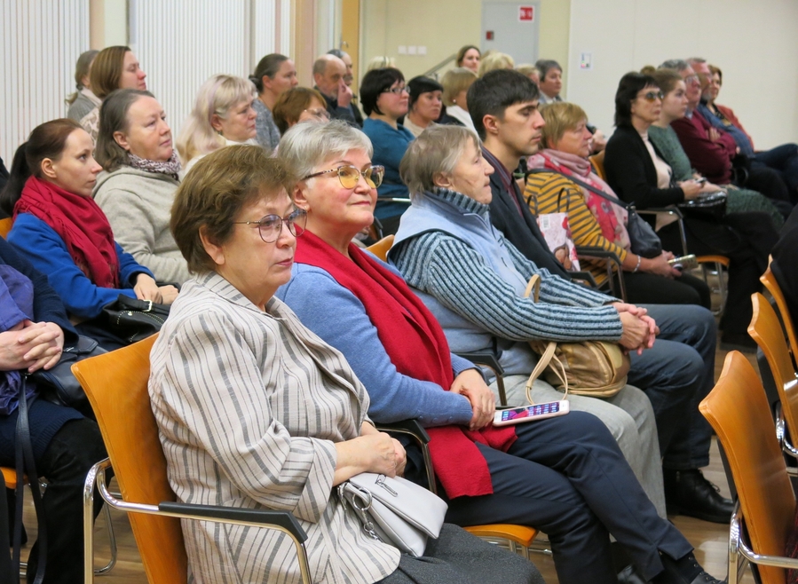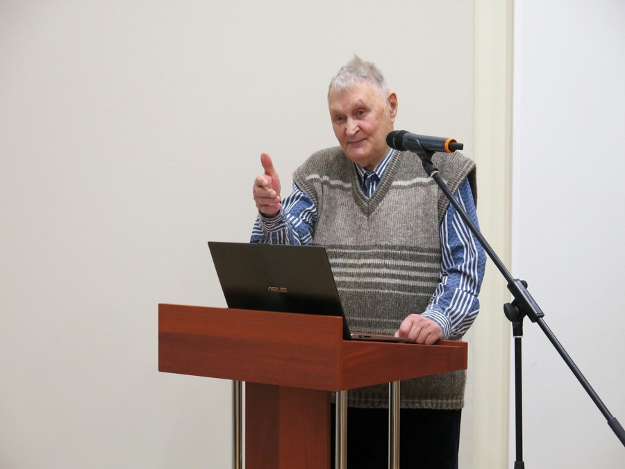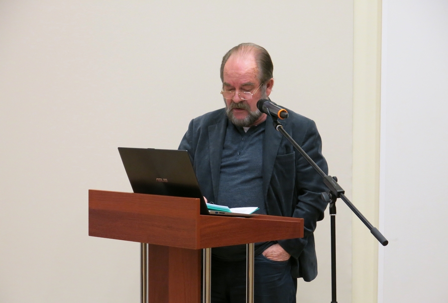 Открыл презентацию Виктор Петрович Ершов – преподаватель, кандидат наук, краевед-подвижник, заслуженный работник культуры Карелии, автор нескольких монографий. Читатель Национальной библиотеки, постоянный участник «Краеведческих чтений», член клуба «Краевед». Виктор Петрович рассказал, как начиналась его краеведческая деятельность в городе Медвежьегорске в 1960-е годы XX века, как появилась идея книги «Потаенный фольклор Карелии».
