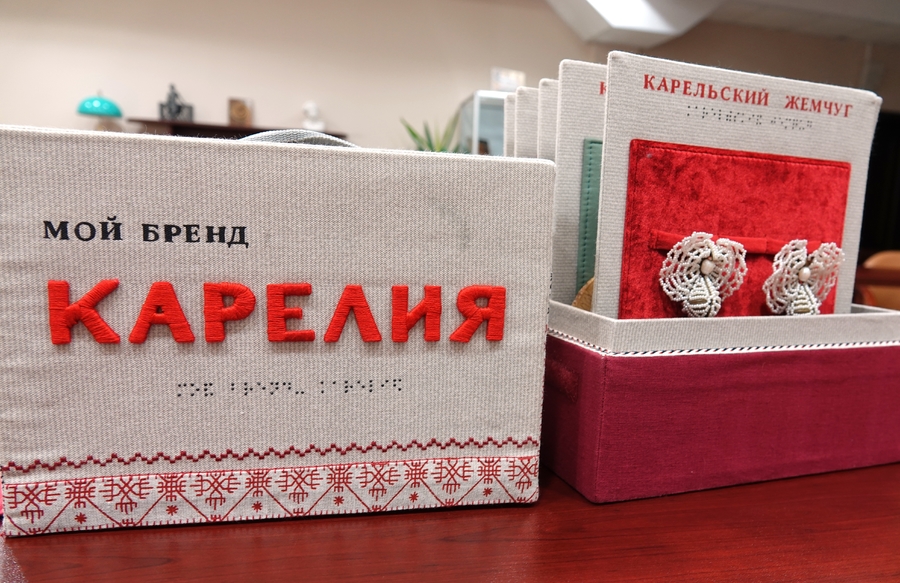 Екатерина Арнольдовна Добрынина, учитель-дефектолог кафедры обслуживания пользователей с ограниченными возможностями здоровья отдела библиотечного обслуживания, представила тактильные книги из фонда Национальной библиотеки о карельских растениях, насекомых, млекопитающих.