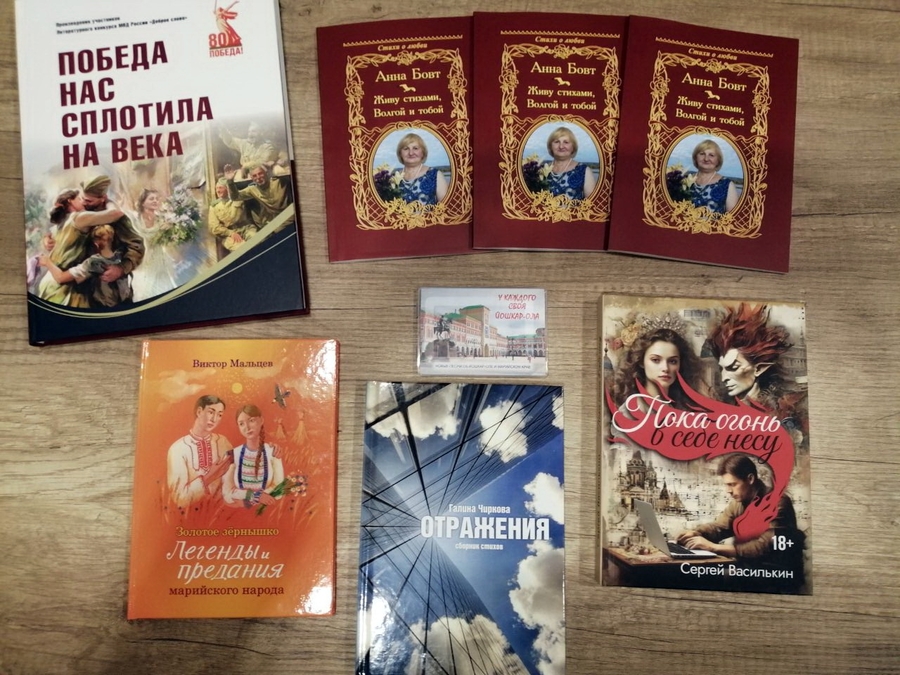Давний друг клуба «Пегас» поэт и прозаик Игорь Алексеев передал тематическую флешку – сборник песен «У каждого своя Йошкар-Ола», посвящённых родной республике. Примечательно, что песни созданы с использованием искусственного интеллекта на стихи Игоря Алексеева и Галины Чирковой.