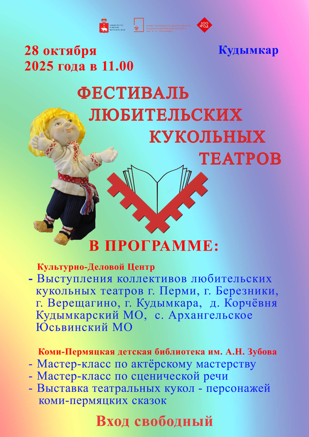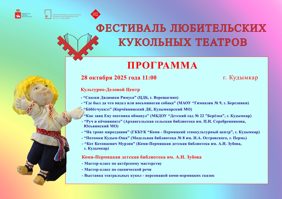 Коми-Пермяцкая центральная национальная библиотека им. М.П. Лихачёва» при поддержке Министерства культуры Пермского края организовала и провела фестиваль любительских кукольных театров (6+).