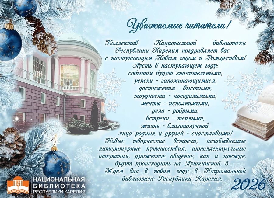 29/12/2025 Национальная библиотека Карелии поздравляет с Новым годом и Рождеством!
