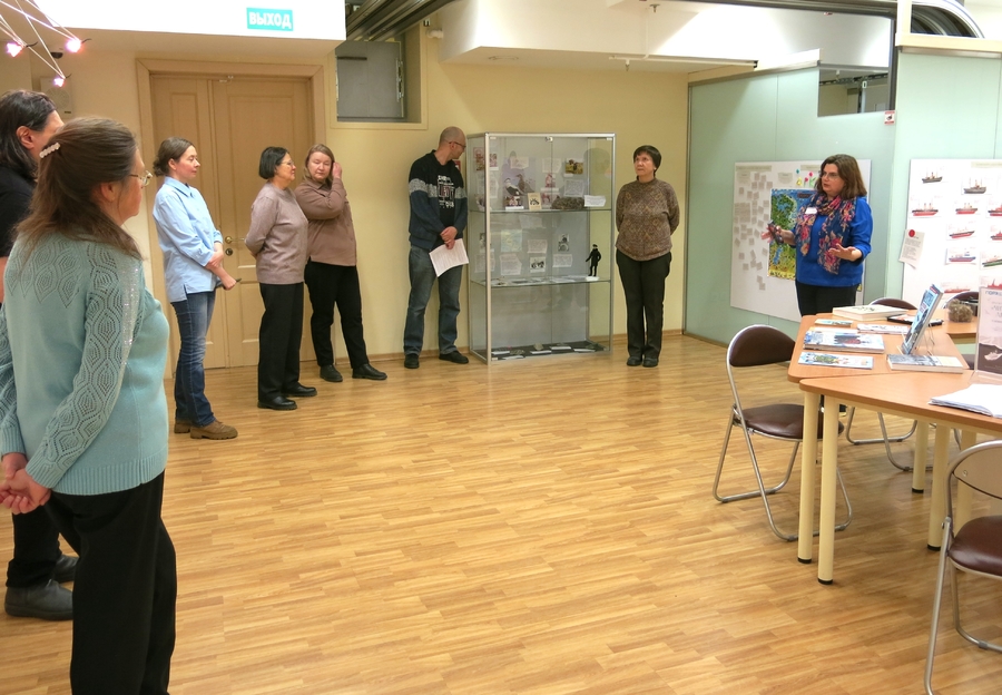 В первой части программы они побывали на экскурсии по выставке Национальной библиотеки Карелии «Читаем об Арктике», посвященной 500-летию освоения Северного морского пути. Участники узнали, что отечественная литература об Арктике представляет собой обширный «книжный океан». Это сказки для детей и приключенческие романы для взрослых, научно-популярные издания о животных и книги о первооткрывателях северных земель, стихи и полярные дневники путешественников. Информационные стенды выставки предлагают литературу по десяти разным темам, связанным с Арктикой. Яркое впечатление производят предметный ряд и интерактивная зона выставки.