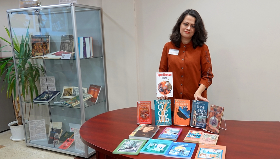 Участники познакомились с произведениями, в которых есть осенняя атмосфера, выраженная во времени действия, в образах и в характерах героев, в темах. Осень в книгах – также контрастна, как и осень года, где есть и яркие краски сентября, и унылость, оголенность ноября. Поэтому к осени писатели обращаются и как к уютному фону, и как к атрибутам тревожного состояния души и ума. В подборке «осенних» книг, представленных в Национальной библиотеке Карелии, читатели найдут и современный отечественный мистический детектив, и французский роман о поздней любви, и философские размышления о времени и жизни.